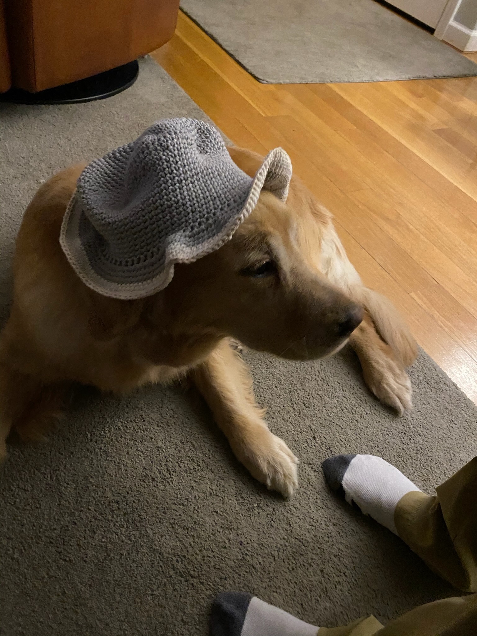 Simple, stylish, and oh-so-comfy! This bucket hat is crocheted in neutral gray and cream stripes. Fits most adults and has a nice structured brim. Great for everyday wear!
