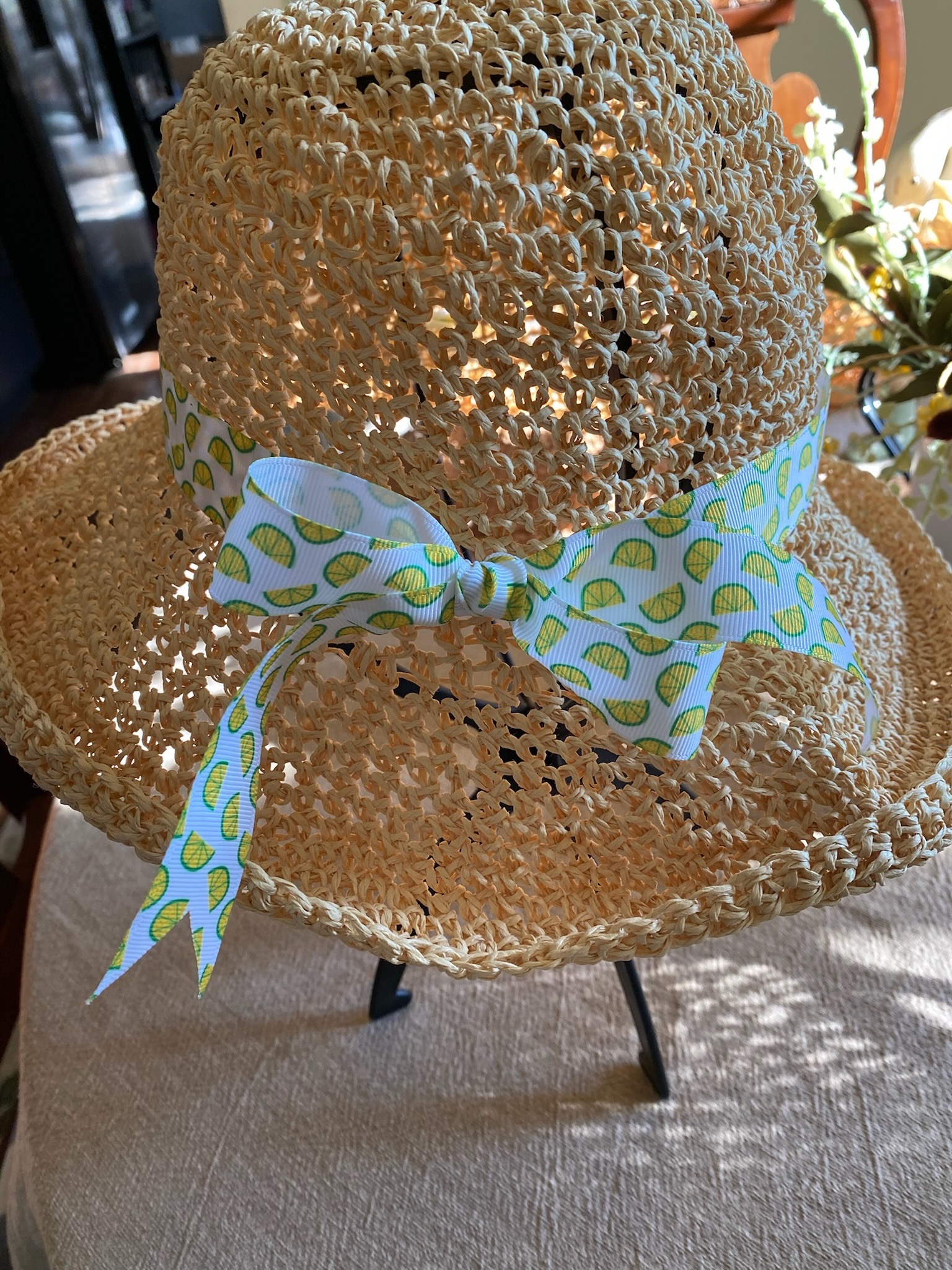 When life gives you lemons, wear them! This sweet sun hat features a cheerful lemon-print ribbon bow around the crown. Same gorgeous natural tan weave as our classic floppy hat. Zesty, fresh, and absolutely adorable!