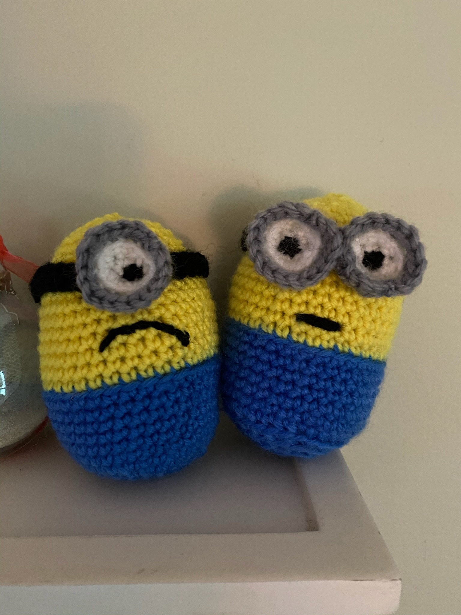 Banana! These adorable minions come as a pair — one with two eyes and one with just one! Each stands about 5 inches tall. Perfect for any Despicable Me fan. They're ready to cause some mischief!