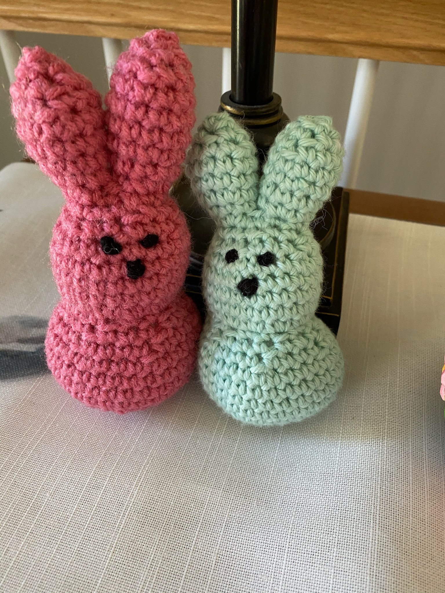 Just like the candy, but calorie-free! This set of 4 Peeps-style bunnies comes in yellow, blue, pink, and green. Each is about 4 inches tall. Adorable for Easter baskets or spring decor!