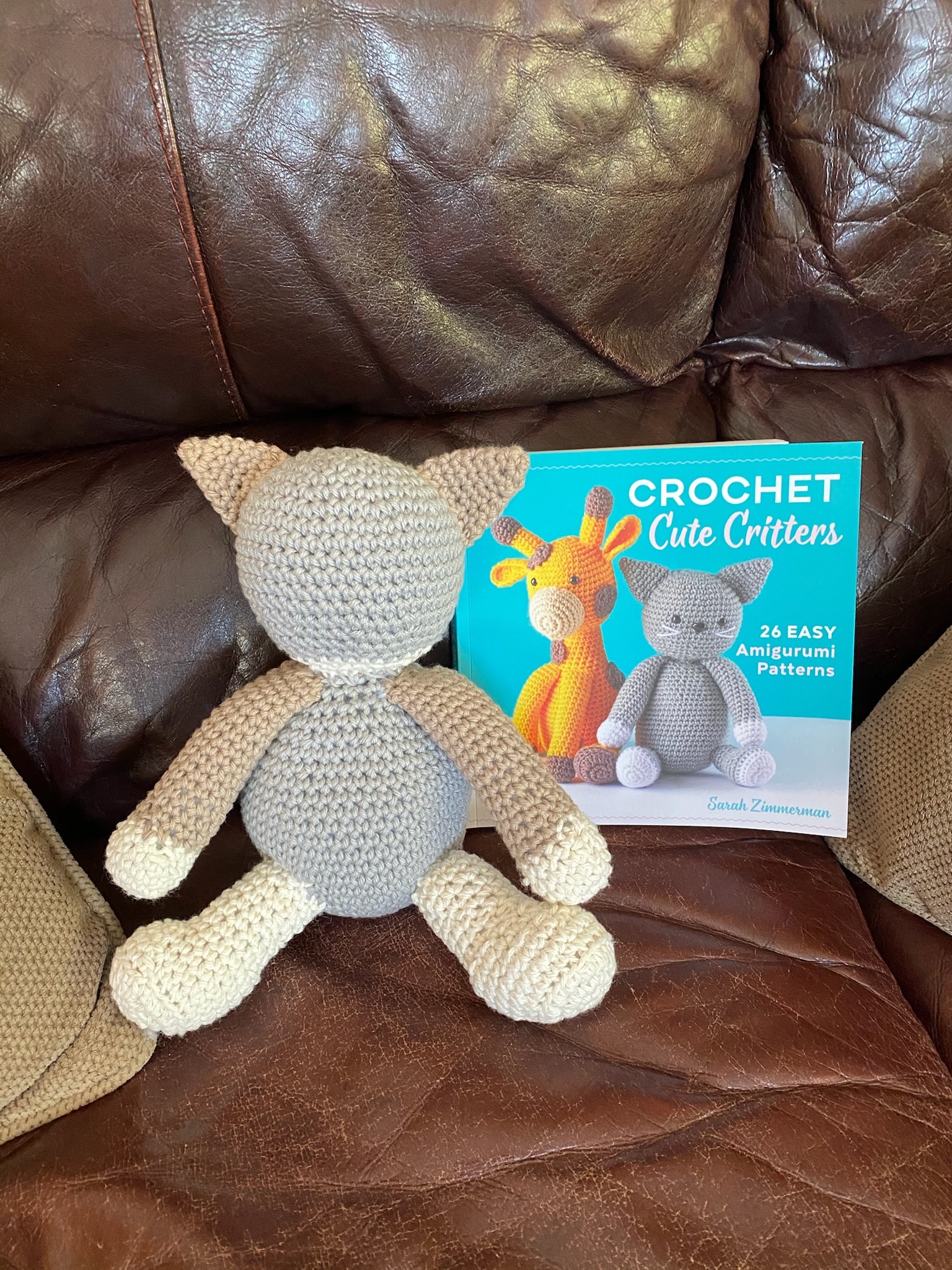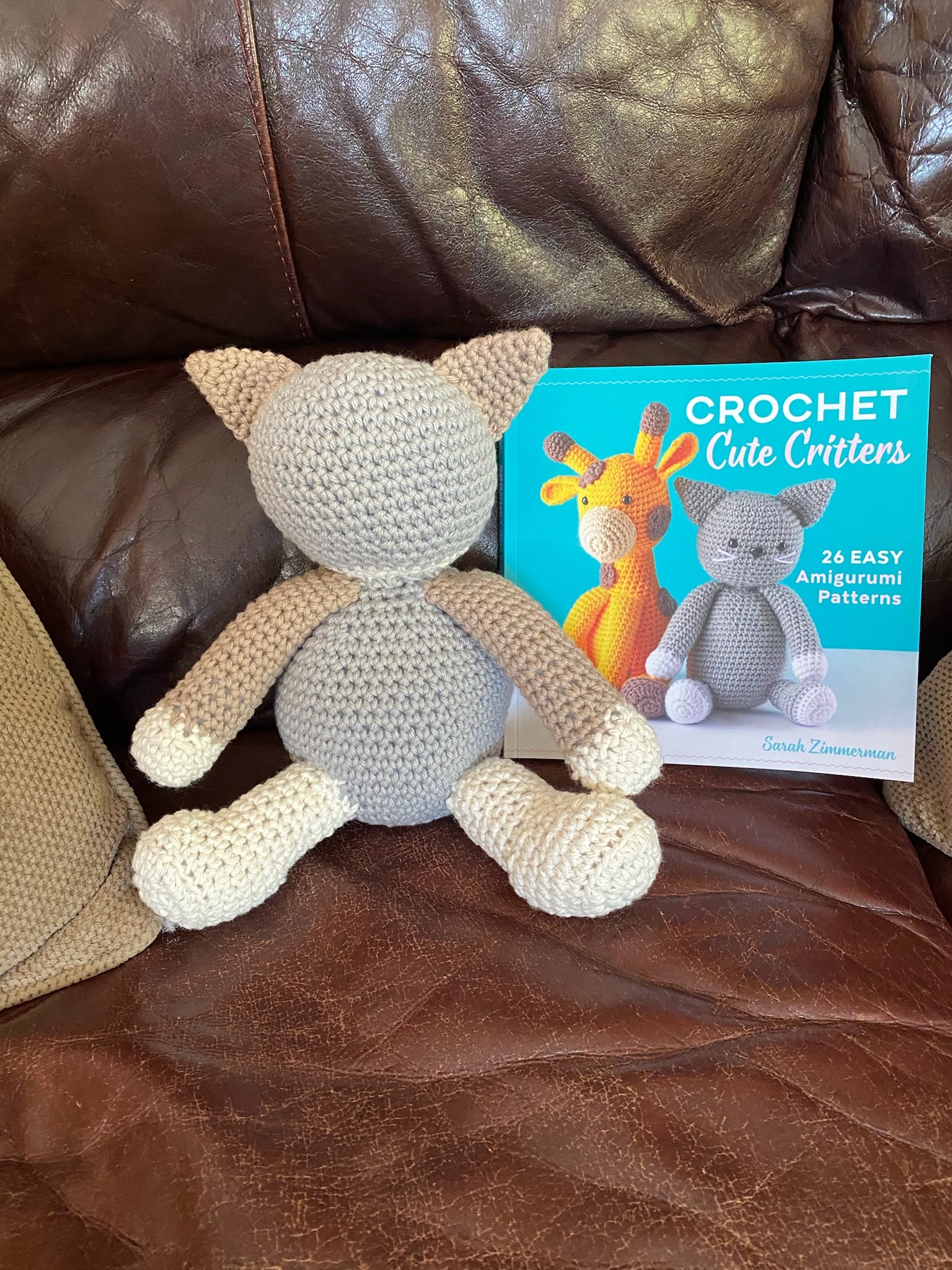 This sweet kitty is the purrfect companion! Crocheted in soft beige and cream with embroidered whiskers and a friendly face. About 10 inches tall and wonderfully huggable. No litter box required!